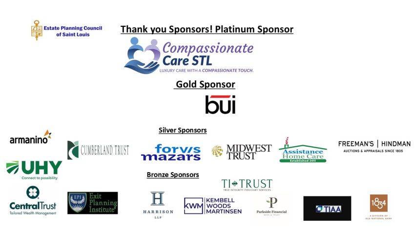 Estate Planning Council of St. Louis is registered with the National Association of State Boards of Accountancy (NASBA) as a sponsor of continuing professional education on the National Registry of CPE Sponsors. State boards of accountancy have final authority on the acceptance of individual courses for CPE credit. Complaints regarding registered sponsors may be submitted to the National Registry of CPE Sponsors through its website: www.nasbaregistry.org.